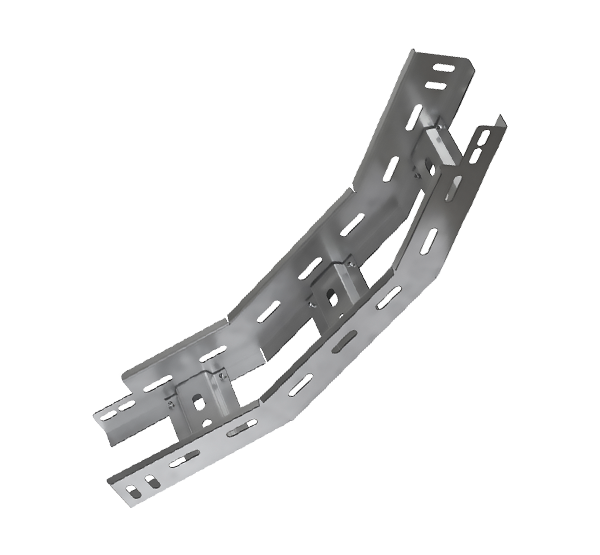 Угол лестничного лотка применяется при необходимости сформировать поворот лестничной кабельной трассы (кабельроста) в горизонтальном или вертикальном направлении.